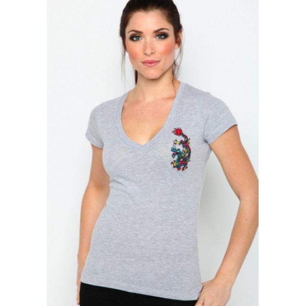 Ed Hardy T Shirts Dragon Logo Grey For Women