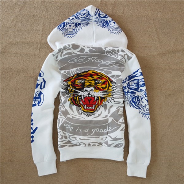 Mens ED Hardy Hoodies Skull Tiger In White Online Sale